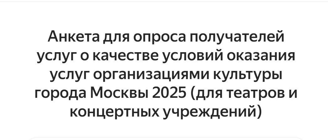 Обращаемся к Вам с просьбой пройти Анкету для опроса получателей услуг о качестве условий оказания услуг организациями культуры города Москвы 2025.